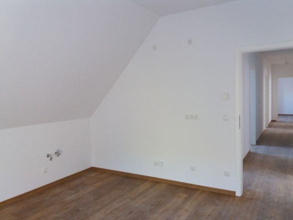 Die angebotene Wohnung befindet sich im Dachgeschoss des Hauses, welches Sie mit dem vorhandenen Fahrstuhl problemlos erreichen. Hier stehen Ihnen 5-Zimmer gegliedert in ein Schlaf-, zwei Kinder- oder Arbeitszimmer, ein Badezimmer mit Badewanne und separater Dusche, ein Wohnbereich und einer Küche zur Verfügung. Vom Wohnzimmer und von der Küche gelangen Sie auf die sehr großzügige Dachterrasse, die im Sommer Ihren Wohnbereich nach außen vergrößert. Ein Abstellraum bittet Ihnen die Möglichkeit, die Dinge, die Sie nicht alltäglich benötigen zu verstauen. Der Fußboden wurde mit einem Vinylbelag in einem modernen und sehr wohnlichen Holzdekor ausgestattet. Die Fenster sind selbstverständlich dreifach verglast. Zusätzlich dazu ist auch die Anmietung eines Pkw-Stellplatzes (mtl. 50,00 €) grundsätzlich möglich.