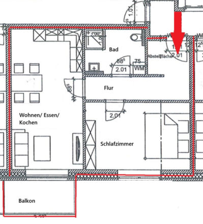Die angebotene Wohnung verfügt über zwei Zimmer und gliedert sich in ein Schlaf-, einem Badezimmer mit Dusche und einem Wohnbereich mit einem offenen Küchenbereich inkl. Einbauküche. Auf dem Balkon, den Sie vom Wohnzimmer aus erreichen, können Sie Ihren Feierabend ausklingen lassen. Für die Wärme und den Komfort sorgt die Fußbodenheizung, welche sich individuell in jedem Raum separat regulieren lässt. Bei einem KfW-Energieeffizienzhaus 40 ist der Wärmeenergieverbrauch um 60 % geringer als bei einem vergleichbaren Neubau. Dieser geringere Energieverbrauch wird durch einen umfangreichen Wärmeschutz und eine hochwertige Dach- und Bodenplattendämmung gewährleistet.