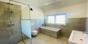 Die Immobilie verfügt über eine Vielzahl an modernen Ausstattungsmerkmalen, die den Wohnkomfort auf ein neues Niveau heben. Im Bereich der technischen Ausstattung bietet das Objekt Kabel Sat TV für eine breite Auswahl an Unterhaltungsmöglichkeiten. Die Beheizung erfolgt durch eine effiziente Fußbodenheizung, die für angenehme Wärme sorgt. Eine Luft-/Wasser-Wärmepumpe sorgt für umweltfreundliche und kostengünstige Beheizung des Gebäudes. Des Weiteren stehen Stellplätze zur Verfügung, um Ihren Fahrzeugen einen sicheren Abstellplatz zu bieten. Elektrische Außenjalousien ermöglichen eine bequeme Steuerung des Lichteinfalls und sorgen für Privatsphäre. Im Erdgeschoss erwartet Sie eine großzügige Terrasse, die zu gemütlichen Stunden im Freien einlädt. Die offengehaltene Küche im Wohnbereich schafft eine offene und kommunikative Atmosphäre. Ein Hauswirtschaftsraum sowie ein Gäste-WC komplettieren das Raumangebot im Erdgeschoss. Im Obergeschoss befinden sich ein Schlafzimmer, ein Kinderzimmer und ein Gästezimmer, die ausreichend Platz für die individuellen Bedürfnisse bieten. Das Badezimmer ist mit einer ebenerdigen Dusche und einer Badewanne ausgestattet, um Ihnen eine entspannende Auszeit zu ermöglichen. Zudem ist die Warmwasserversorgung dezentral geregelt. Die Immobilie erfüllt den KFW 55-Standard und zeichnet sich somit durch eine hohe Energieeffizienz aus. Dies bietet Ihnen nicht nur ein angenehmes Wohnklima, sondern auch eine langfristige Kostenersparnis. Diese erstklassige Ausstattung macht dieses Objekt zu einer attraktiven Wohnmöglichkeit, die keine Wünsche offen lässt.