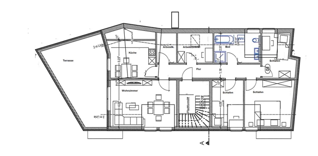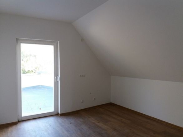 Die angebotene Wohnung befindet sich im Dachgeschoss des Hauses, welches Sie mit dem vorhandenen Fahrstuhl problemlos erreichen. Hier stehen Ihnen 5-Zimmer gegliedert in ein Schlaf-, zwei Kinder- oder Arbeitszimmer, ein Badezimmer mit Badewanne und separater Dusche, ein Wohnbereich und einer Küche zur Verfügung. Vom Wohnzimmer und von der Küche gelangen Sie auf die sehr großzügige Dachterrasse, die im Sommer Ihren Wohnbereich nach außen vergrößert. Ein Abstellraum bittet Ihnen die Möglichkeit, die Dinge, die Sie nicht alltäglich benötigen zu verstauen. Der Fußboden wurde mit einem Vinylbelag in einem modernen und sehr wohnlichen Holzdekor ausgestattet. Die Fenster sind selbstverständlich dreifach verglast. Zusätzlich dazu ist auch die Anmietung eines Pkw-Stellplatzes (mtl. 50,00 €) grundsätzlich möglich.
